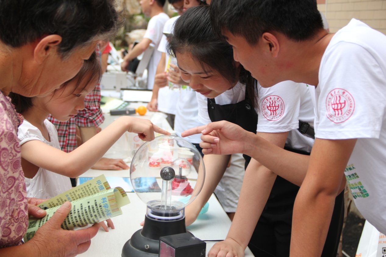 实践团成员们将科学商店的品牌活动“便民服务日”及“科普大讲堂”带进济南市泺口街道金牛社区。“便民服务日”活动中,实践团推出了农药残留检测、空气甲醛检测、电磁辐射检测、DIY护手霜以及益智游戏等多个参与性和互动性很强的服务项目,活动同时发放了由我校科普志愿者编写的科普读物《生活百科》以及《科普宣传手册》。“科普大讲堂“活动在金牛社区举行,“夏令防暑”、“辨伪求真”、“电磁奥秘”三个贴近生活的主题,融入了现场体验、互动答题等环节设计,带给社区居民一场科普盛宴,吸引众多居民前来,受到社区居民及领导的好评和赞许。志愿者用所学专业知识服务大众,帮助社区开展形式多样的科学普及活动,提高公众的科学意识。此外,实践团还与山东大学唐仲英爱心社开展了志愿服务经验交流。