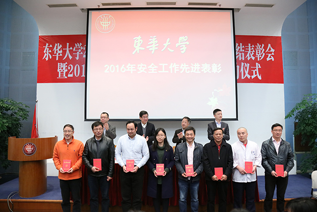 会议表彰了2016年学校安全工作先进集体和个人,纺织学院、材料学院、学生处、研究院、图书馆、财务处等6个集体荣获“2016年安全文明单位”称号,吴国海、余阳、王彦、宋崇伟、方强、张景慧等6位教工荣获“2016年优秀安全员”称号,王新厚等38位师生被评为“2016年安全工作先进个人”。材料学院、学生处安全工作负责人、优秀安全员代表、安全先进个人教师代表、学生代表分别作了工作交流发言。
