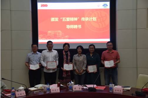 会上还举行了材料学院“五爱精神”传承计划启动仪式,传承计划以提升青年教师坚定理想信念、厚植爱国情怀、涵养高尚师德、提升为党育人、为国育才能力为根本目标,选聘关工委老同志、在职党员、干部、骨干教师担任青年青年教师导师,充分发挥“传帮带”作用,助力青年教师成长发展。首批导师共计24名,其中退休老同志16名、在职教师8名,将与63名38周岁以下青年教职工进行结对。党委教师工作部副部长骆祎岚为在职教师导师颁发聘书,戴蓉、朱美芳为退休老同志颁发聘书。