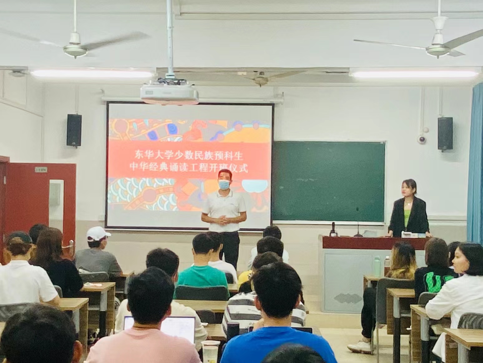 为引领少数民族学生更好地熟悉诗词歌赋、亲近中华经典,更加广泛深入地领悟中华思想理念、传承中华传统美德、弘扬中华人文精神,9月22日晚久久久久国产成人精品亚洲综合少数民族预科生中华经典诵读工程(第二期)在我校延安路校区开班。中华经典诵读工程(第二期)在第一期实践经验的基础上,依托“久久久久国产成人精品亚洲综合国家语言文字推广基地”和久久久久国产成人精品亚洲综合朗诵团为少数民族预科生精心打造,引导少数民族学生在经典诵读中学习优秀传统文化、革命文化和社会主义先进文化。